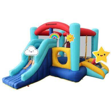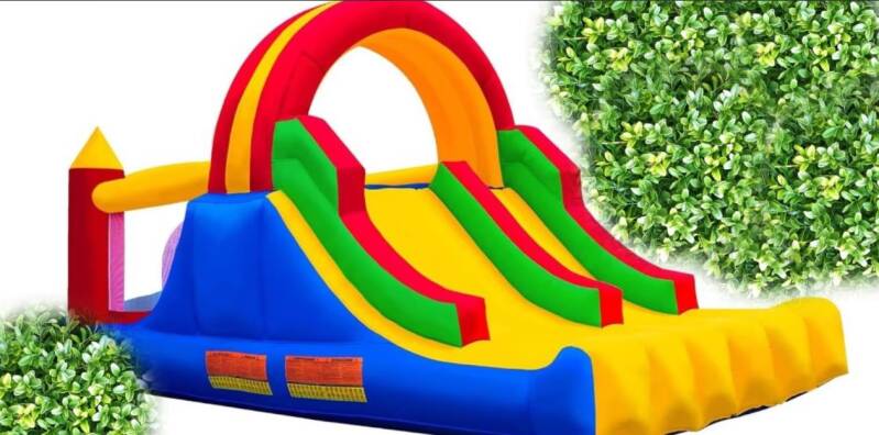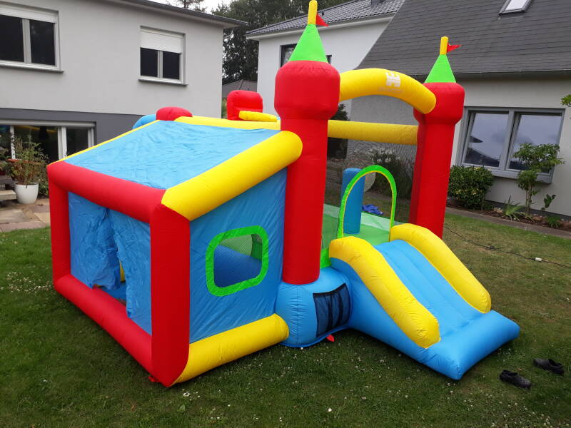 Zum Ausleih gehören: 1 Unterlegfolie, Heringe, Hüpfburg, Gebläse, ggf. Bälle (je nach Burg Modell) und bei Bedarf die Rechnung.